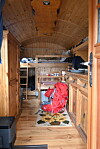 Vogna, eller brakka, kjøpte de brukt i Tyskland. For å gjøre den kompatibel med norske vintre har de satt inn en vedovn, ellers har brakka alt man trenger for livet på veien forteller de.