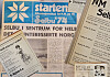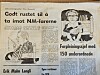 Over ser vi forsida på NM-avisa fra 1974. I avisa finner man verneverdige reklamer, illustrasjoner og karikaturer, omtaler av kjente menn og kvinner og de store spørsmålene som melder seg rundt et slik arrangement. Skulle det for eksempel bli gatebelysning i Mebonden? Hva med Kongen, som i forkant av NM var syk. Kom han eller kronprinsen til å dukke opp?
