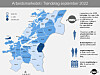Ifølge NAV er det til sammen 5 212 arbeidssøkere i Trøndelag ved utgangen av september. Det er 2,1 prosent av arbeidsstyrken, og er en nedgang på 3 720 personer fra samme måned i fjor. Av disse er 2 972 helt ledige (1,2%), 1 545 delvis ledige (0,6%) og 695 arbeidssøkere i tiltak (0,3%).
