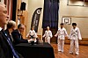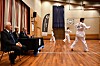 Klubbmedlemmene har kledd seg etter den høytidelige anledningen. På et dommerpanel sitter styreformann Gunnar Kvarme og ekteparet Anne og Geir Ove Rønsberg. De skal vurdere 14 elever fra Peder Morset folkehøgskole på sin første gradering, noen med en diagnose, noen uten. På graderingen skal de vise at de behersker teknikk, styrke og teori.