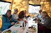 Etter at deltakerne var kommet i havn igjen i Nøsteråa, fikk de servert treretters middag fra Fjellguiden. Alle rettene var komponert med lokale råvarer.