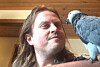 Det er tydelig kjærlighet mellom Sukha og den snakkende papegøya Allegro. Foto: Lina Tørum.