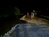 Årsaken er at en bekk skal ha tatt med seg deler av vegen. Folk bes også om å holde avstand til stor vannføring i bekker og elver.