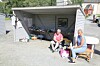 Menighetshuset arrangerte loppemarked tidligere i vår, og benyttet familiedagen som anledningen til å få solgt unna varer som ikke gikk da. Ingrid Kjøsnes og Cathrine Fuglem nøt sola utenfor boden.