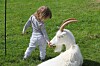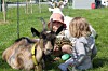 De harmoniske og rolige geitene som sto inngjerda på baksiden av museet ble en hyppig besøkt attraksjon. Det var til enhver tid barn innenfor innhegningen i skjønn forening med diverse representanter for Bukkene Bruse-slekta. Kari Grøtte Gylland (i rosa solhatt) var et av barna som fikk seg noe nye venner på familiedagen.