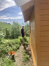Da BAT-gjengen var ferdig med byggingen av lekehyttene og grunnmuren, ble hyttene fraktet bort til området. Så kom Jo Dybvad ved Terrax og heiste de på plass med kran.