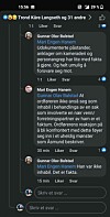– Jeg begynte ikke valgkampen like tidlig som SV, for øvrig står jeg hundre prosent inne for det jeg skrev på Facebook. Jeg regner med at ytringsfriheten gjelder alle, ikke bare noen få utvalgte. Til opplysning deltok jeg ikke i behandlinga av denne saken i Kontrollutvalget. I tillegg oppfordrer jeg gode krefter i Selbu SV til å bli like kritiske til egne folkevalgte som de er mot ordføreren og hans parti.