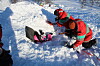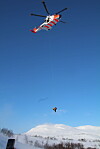 – På morgenen demonstrerte vi bruken av transceivere for skredsøk, samt søkestang. Så hadde vi en post med hjerte- og lungeredning og spjelking av lårbeinsbrudd. Da SAR Queen meldte sin ankomst, gikk vi over til å øve på søk i et større snøskred, der seks skigåere var "tatt". Disse hadde transceivere på seg, slik at det var mulig for helikoptret å søke etter dem fra lufta. De to første ble funnet tvert, og helikopteret sendte ned redningsperson og lege. De siste ble også funnet etter kort tid.