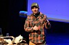 Sammen med sin sju år gamle alaskan husky Tarzan inntok han scenen på sjarmerende vis, og måtte innrømme at han ble ganske nervøs av å se utover salen som var godt fylt opp.