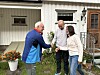 Etter at overrekkelsen av rose er over, går de tre gode naboene inn til Cristi og Harald for litt kaffe, slik som gode naboer gjør.