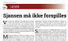 Jeg er overrasket over at Selbyggens leder ser seg nødt til å påpeke og rettlede på denne måten. Er det noe vi skal være veldig forsiktige med i Selbu så er det å kneble engasjement samt å påpeke at enkeltes synspunkter ikke er relevant! Vi er på tur inn i en lokal valgkamp der vi som representerer de ulike partiene ikke kan finne på meningsforskjeller og ulikheter oss partiene i mellom. Vi er jo tross alt enige om mye. Men der det er forskjeller må vi diskutere, og folk i bygda må få si sin mening. Vi må ha engasjement om saker, det er viktig for at det lokaldemokratiske systemet skal fungere og få oppslutning.