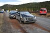 To av de involverte bilene fikk til dels store skader, mens den fremste bilen fikk en bulk på venstre side i bakenden.