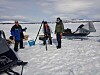 Vi startet fra Ol-Persbakken, og det ble kjørt med 1 snøscooter med storkjelke, og 3 snøscootere med mindre kjelker. Vel ankommet isen på Essand, begynte vi og isfiske, og etter hvert tittet også sola fram. Det ble så å si fisk på alle.