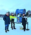 Nede på Stuguvollmoen møter vi også Ingve Bugge Pedersen og John Inge Sørensen, som de siste ukene har jobbet mange timer dugnad for å lage snø, skispor og skøytebane. Temperaturene i det siste har ikke spilt på lag, men de er fast bestemt på å få til et fint aktivitetsområde, som kanskje kan tas i bruk i løpet av jula. Ingve forteller at området på Stuguvollmoen er svært godt tilrettelagt, med helt nye toalett- og dusjfasiliteter.