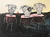 I starten var maleriene hans veldig fargesterke, men i den senere tiden har han gått over til en mer dempet fargepallett med lyse pasteller i kombinasjon med brukket hvit eller beige. De absurde vesenene har vært med hele veien.