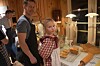 Men i kjøkkenregionen var altså julekakebakingen i full gang hele tida der den yngste generasjonen nå tydelig fikk glimrende opplæring av sine respektive fedre i kunsten å bake julesmåbrød. Så vi medgir gjerne at den eldste generasjonen av fedre, som nå altså hadde tatt plass i sofaen i stedet for på kjøkkenet, må ha utført sitt bakepedagogiske arbeid på en utmerket måte da sønnene var i tannfellinga og noen påfølgende år deretter. Og nå overføres altså kunnskapen igjen til den oppvoksende slekt. En ting kunne vi ikke unngå å legge merke til; at det for første gang var en dame med på julebakingen, da lille Ada Gjertsen hjalp pappa Knut Magnus med krumkakene.