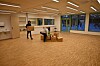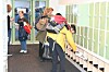 Første stopp er garderobene. Hvert trinn har sin egen, med personlige skap og hyller. På den nye skolen må man bruke innesko, så dette blir et naturlig første stopp på starten av hver skoledag. Lærerne tar imot elevene sine, og det knises og hviskes. De ønskes velkommen av de fire i gangen, mens de haster forbi med stabler av bøker i hendene. «Det e så lyst her!» utbryter en av elevene. Kompisen har svaret: «Det må vær heaven!»