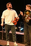 PS! Hvis artistene trodde at lokalavisa ikke skulle nevne konkurransen de måtte gjennom, med ulike instrumenter, så tar de feil. Her er et lite bildegalleri også fra den sekvensen, som gjorde at store deler av salen ristet av latter.