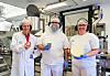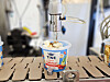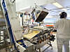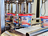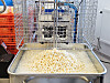 Under den kommer det beger på løpende bånd og blir først fylt med osteterninger, deretter krydder, så olje og til sist blir det satt på lokk, før begeret sendes til et annet rom.