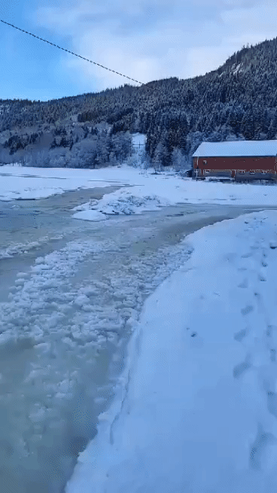 – Vi har gravd unna en del is i elva, så nå går det bra. Heldigvis har vi gravemaskin selv.