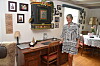 – Det skjedde i huset her. Hvis du ser nøye etter på stuedøra her, kan du skimte ordet kontor under malingen. Og her ved dette skrivebordet, så nok den første handskrevne og hektograferte utgaven av Selbyggen dagens lys i mai 1889, sier Trondheims-kvinnen, Astrid Winum.