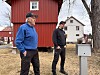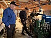 Oddbjørn og Jo snur seg og peker mot en høy, siloformet konstruksjon ved verkstedet. Den rommer gårdens sentralfyringsanlegg. Der fyres det med spon som varmer opp vann. Vannet sirkulerer så i rør gjennom verksted og bolighus, og fungerer som oppvarming på gården. Systemet er selvsagt konstruert av karene selv.
