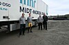 Omsider begynte vi på turen mot Selbu igjen, og på veien var det et stopp hos Midt-Norsk Rør AS på Stjørdal. Samarbeidet har så langt vart i to år, og det kan virke som det er fruktbart for begge parter. Opprinnelig så skulle guttene kjøpe seg lastebil selv, men behovet for å gjøre det innkjøpet ble mindre da de kom i kontakt med Ove Harry. Nå er det deres logo som pryder semitraileren hans.