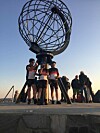 Da de hadde igjen 13 kilometer til Nordkapp, tok de en skikkelig stopp og feiret med et nydelig fiskemåltid på restaurant i Honningsvåg. Og så starta de på de siste 13 kilometerne i passe tid for å nå målet ganske nøyaktig ved midnatt. Der ble det feiring med edle dråper før de tre syklistene og de to i støtteapparatet, Edel Raaen og Julie Langli, overnattet på Nordkapp-platået i midnattssol under åpen himmel.