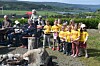 Den faste turgruppa som hver onsdag trimmer i frisk luft i sentrumsområdet, startet opp fra frivilligsentralen og ankom Kvellohaugen sammen med en mange andre som enten kom til fots eller med bil og ble ønsket velkommen på grillplassen av velforeningens aktive leder, Einar Sæther.