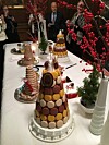 Sverre ble invitert som æresgjest til julelunsjen på ambassaden i Paris. Til høyre: Her sammen med ambassadens Ministerråd for kultur og kommunikasjon, Else Cathrine Martens. Med unntak av kransekaka er resten fra julekolleksjonen til Laduree, og kreert av Sverre. Foto: Privat