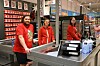 De fleste ansatte innom dørene til Coop Extra er kjente fjes. Forskjellen er at de nå skal ha på seg røde trøyer i stedet for gule. F.v: John Anders Vollan Marstad, Lise Overvik, Rita Johanne Moslet og Joakim Stokke.