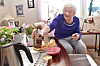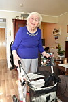 – Jeg er i omsorgsleiligheten min på Nestved der jeg har bodd de siste elleve åra. Det var litt langsomt å flytte fra heimen min i Innbygda, men jeg tenkte som så at når jeg nærmet meg nitti og det begynte å bli vanskelig å gå trapper og komme seg på loftet, var det greit å flytte på seg. Det er litt trangt og lite her, men det har også sine fordeler. Da blir det ikke så mye å vaske og holde orden på.