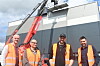 Det var mange mann i aksjon på Sifa denne dagen. Ansatte ved fabrikken fikk Trætlis doning transportert ut av fabrikken, før den så ble koblet på kroken til en kranbil fra Terrax. Torgeir Alsethaug løftet den opp på taket av fabrikken, før representanter for Røset AS forankret den i bygningsmassen og elektrikere fra Eidem Elektro koblet opp det elektriske.