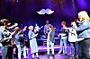 I Æ e trønder, var også musikerne med på showet. Husbandet, som bestod av John Oddstein Aune på el-gitar, Henrik Løvø Aune på keyboard, Martin Aas på el-bass og Kaj Endresen på trommer, satte tonene til showet så det dirret i salen. At de trøsket på så mye at et notestativ braste ned i gulvet, gjorde det bare enda bedre! For dette var et show med høyt trøkk, også på musikkfronten. Det hele toppet seg da John Oddstein Aune hoppet ned på gulvet og tok en gitarsolo under tonene fra the Kids´ Forelska i læreren. Dette passet helt utmerket, og det var som å være tilbake på Gimle eller Neatun en gang på 90-tallet.