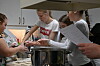 – I stedet for at de har laget skolematen i dag, så har de hjulpet oss her på kjøkkenet. Det er jo ofte sånn at jo flere kokker, jo mere søl, men det har gått veldig bra. Vi har laget elgpai, reinskav, laejpie (samisk brød) og foccacia. Vi laget suppe med lammepølse og noen har ristet snø for harde livet for å lage yoghurtis. En veldig kaotisk dag, men ungdommene tar ansvar og har vært så flinke, sier hun.