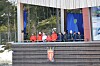 Kai Toralf Græsli, Ingunn Græsli og Lars Græsli på plass på Torvet før show og medaljeseremoni. Foto: Svein Hilmo