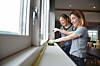 Julie Meghedi Orbelians og Solveig Irgens har sommerjobb i Tydal, der de kartlegger hvilke materialer i kommunale bygg som kan gjenbrukes.