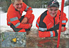 Som elever ved VG 2 anleggsteknikk på Ole Wiig på Stjørdal er Stian Dyrdal og Geir Stian Uthus for tiden utplassert ved Kyllo Maskin. Og mandag i denne uke var de i full gang med å sette ned reflekspinner langs veikanten ved Skarodden. Og der like ved avkjørselen til Selbusjøen Hotell & Gjestegård fikk de øye på en liten gul flekk som stakk opp av isen.