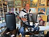 Her har han rigget seg til med et lite, men godt musikkanlegg, og her planlegger han nå minikonserter for folk som vil komme å høre.