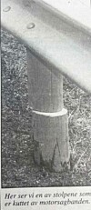 Fire rekkverkstolper i Tømmerdalen hadde blitt kuttet med motorsag. På grunn av dette hadde da rekkverket ingen virkning. Mistanken gikk til en viss «motorsagbande» som visstnok hadde signalisert at de sto bak.