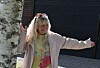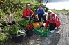 Hun og flere andre har plantet i 17 bøtter med blant annet geranium, stemorsblomster, margeritter og forskjellige andre dekorative planter som vi i farten ikke hadde botanisk kunnskap nok til å artsbestemme.