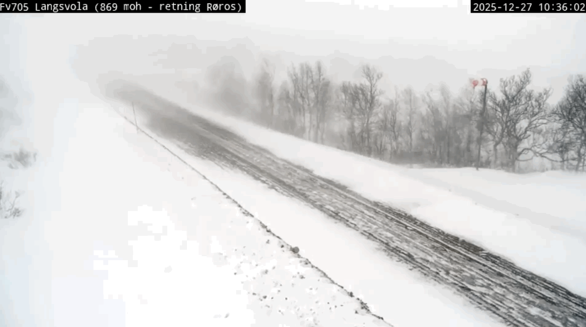Fylkesvei 705 mellom Stugudal og Brekken er stengt som følge av uvær.