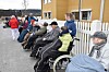 Så surt og kaldt som det var 16. mai, imponerte det oss stort at bortimot 50 personer hadde møtt opp for å lytte til felebyggernes vakre gammeldanstoner. Av ansatte på sykehjemmnet fikk vi høre at det nesten ikke var noen av beboerne som ville sitte igjen inne når det var konsert på paviljongen. Og etter som de var blitt godt innpakket i vinterklær og gode pledd, så det ikke ut som om noen av dem led noen nød. Alle koste seg og trampet takten, og mange ga seg også med i allsangen.