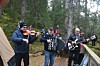 Det var altså ei virkelig feststund med mye folk midt inne i skogen da gamma ble åpnet søndag ettermiddag. Idéskaper Jannicke stod for selve snorklippinga sammen med alle barna i storbarnavdelingen Turte. Og disse ungene kvitterte også for den nye gaven til barnehagen og kretsen ellers, med flott framførelse av to fine barnesanger. Og det var mer musikk som fikk folk til å trampe takten. For her stilte Ole Bjarne selv, Dan og Reidar fra Ole Bjarnes orkester opp og bidro med skikkelig flott gammeldansmusikk.