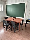 – Vi har fått driftsansatte til å lage blomsterkasser, vi har kjøpt møbler og leker til barn brukt, og brukt en gammel tavle til å skape en lekekrok her på rommet. Jeg har trukket om stolene her og spart titusenvis av kroner på det, og stolene er som nye.