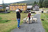 Matmor prøver med lokk og lur, men geitene er kloke dyr og skjønner at noe er i gjære og prøver å komme seg unna. Nok en sommer på Brekka over, og nå er det dags for buføring heim til Jensgården i Græsli.